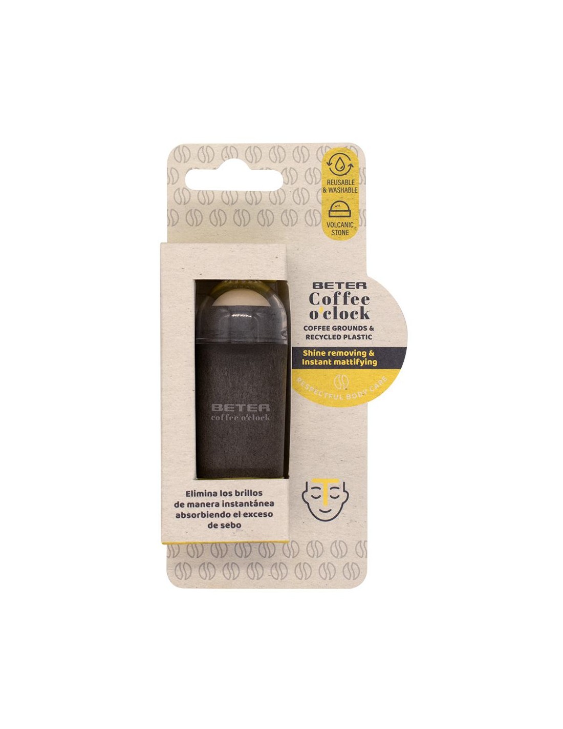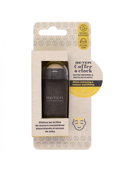 Base fabricada con café molido y plástico reciclados que sujeta una piedra volcánica natural. Elimina los brillos de manera instantánea absorbiendo el exceso de sebo. Perfecto para llevarlo siempre contigo y matificar al momento las áreas del rostro con tendencia a brillar. Es reutilizable, solo tienes que lavar la piedra periódicamente.