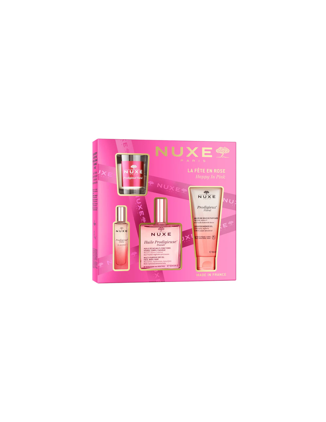 Déjese seducir por las variaciones perfumadas florales con notas alegres del Cofre Nuxe Floral que contiene: