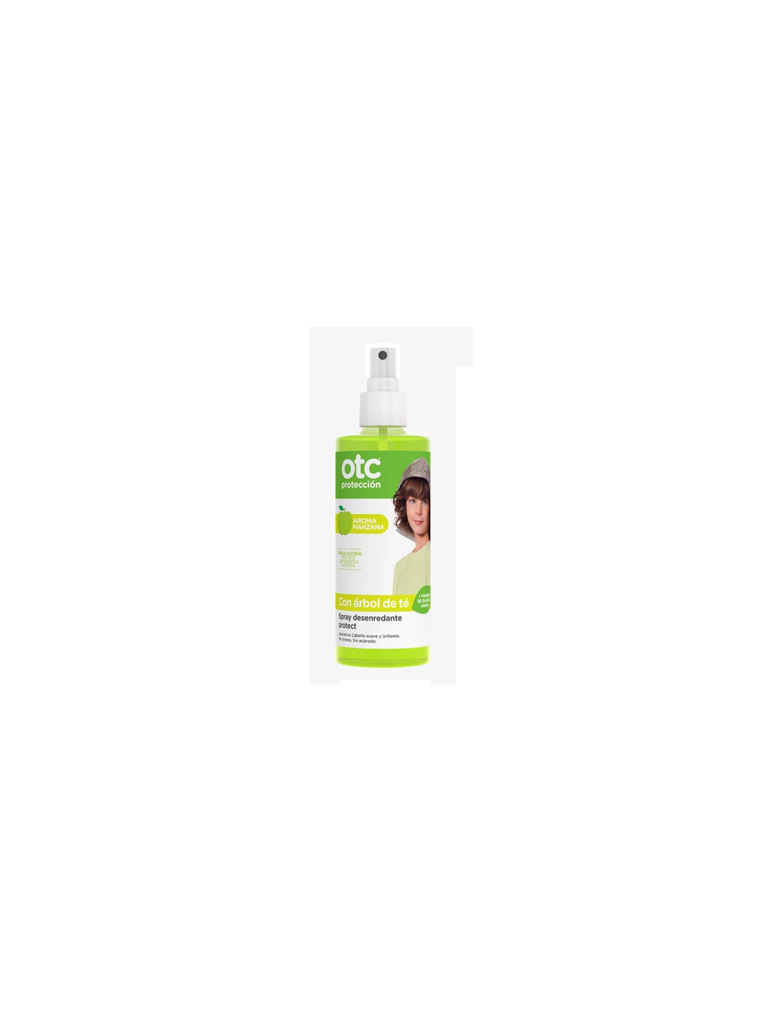 Spray desenredante con aroma a manzana de Otc Antipiojos caracterizado por su triple acción protectora, desenredante e hidratante.