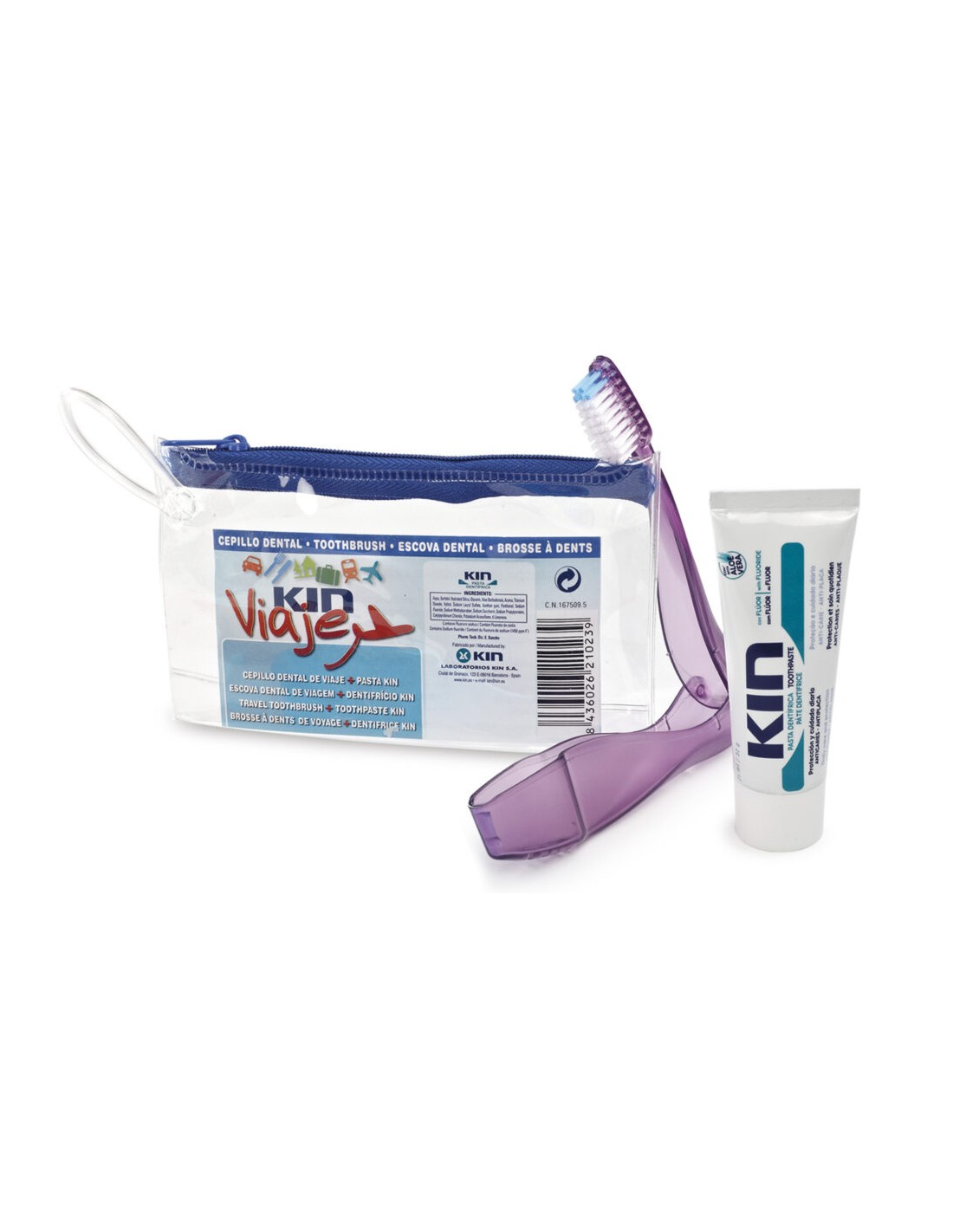 Dispone de un sistema de bloqueo en el mango que evita que se pueda plegar durante su utilización y un sistema de ventilación para una óptima conservación del cepillo. Cepillo dental diseñado con un mango anatómico antideslizante plegable para poder llevarlo siempre encima. Incorpora dentro de un práctico neceser un tubo de dentifrico KIN de 25 ml.