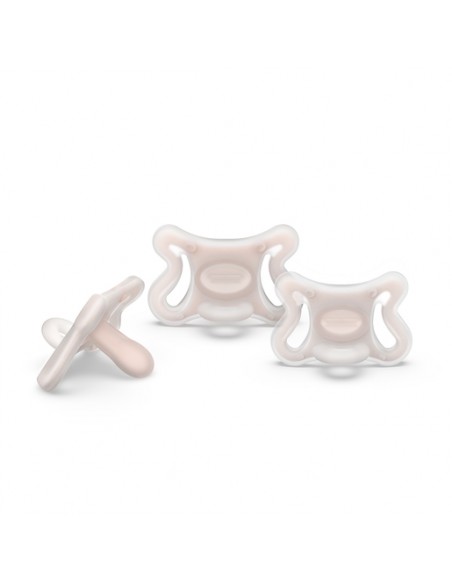 Con skin-friendly silicone. Gracias a su textura, color y forma respeta la correcta implantación de la lactancia materna durante los primeros días de vida del bebé.