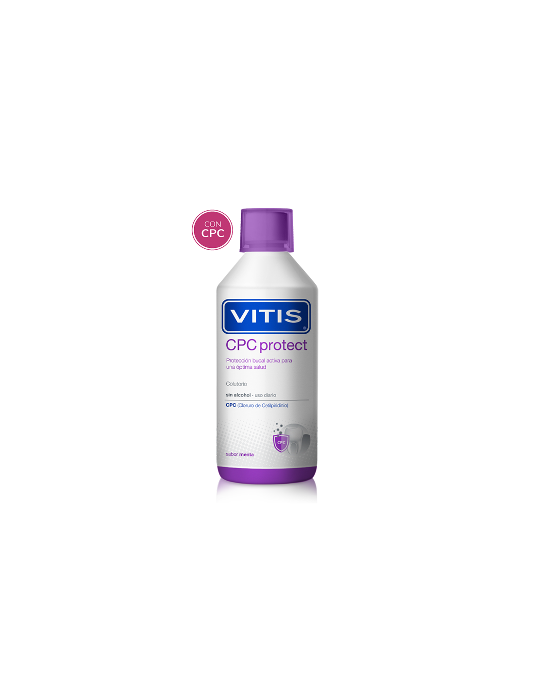 VITIS CPC protect es un colutorio que ayuda a reducir la placa dental (biofilm), ofreciendo una protección bucal activa gracias a su elevada concentración de Cloruro de Cetilpiridinio (CPC).