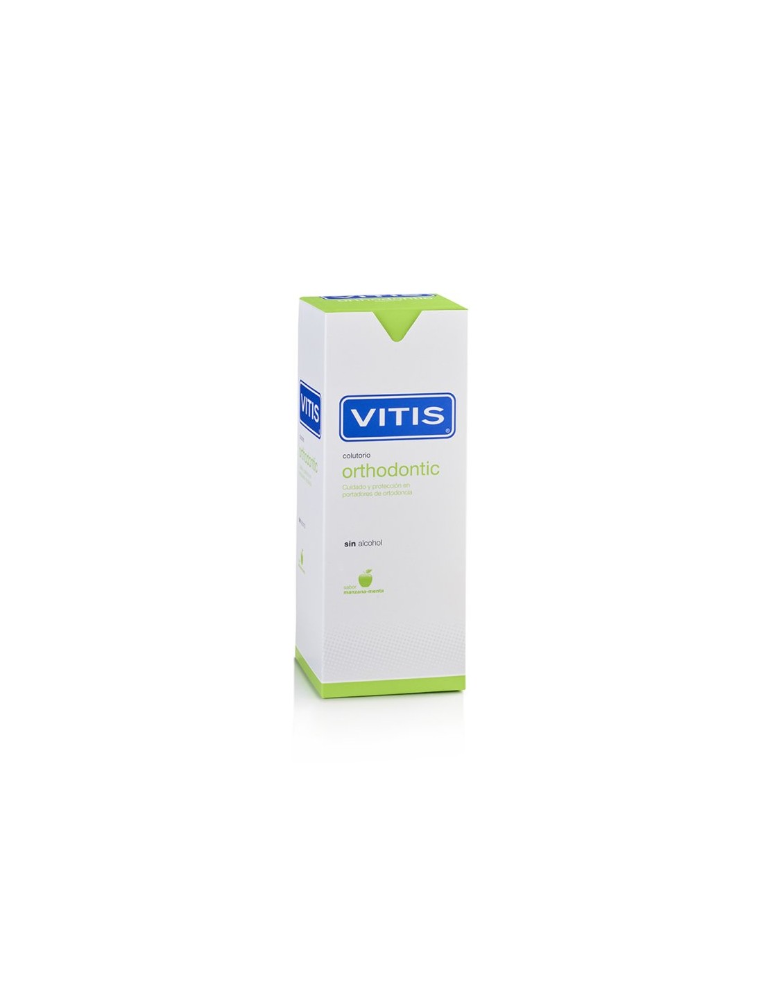 VITIS® orthodontic colutorio es un enjuague de uso diario formulado especialmente para la higiene bucal diaria de los portadores de ortodoncia.