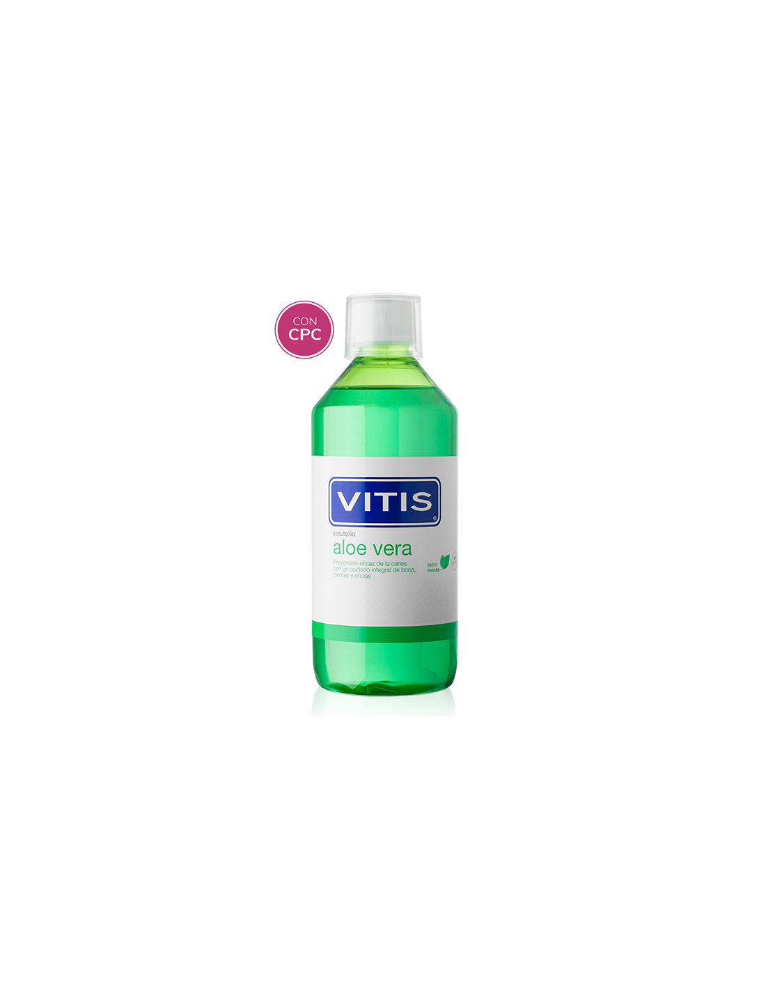 Descripción VITIS aloe vera menta colutorio completa tu higiene bucal diaria.