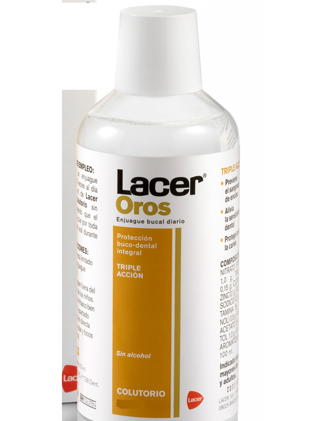 Lacer Oros colutorio no contiene alcohol. No contiene gluten.