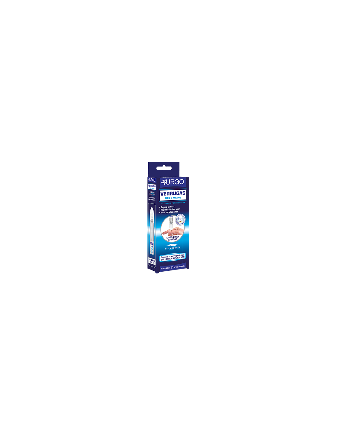 Listo para aplicar, URGO Verrugas Tratamiento por crioterapia es un método seguro, innovador y eficaz para eliminar en casa las verrugas localizadas en los pies y manos. Su aplicador transparente permite un posicionamiento preciso sobre la verruga, para congelar la de raíz. Además, su válvula dosificadora proporciona la cantidad de criógeno adaptada para tratar verrugas de diferentes tamaños. Es ideal para los niños, gracias a su acción gradual que limita las sensaciones dolorosas.