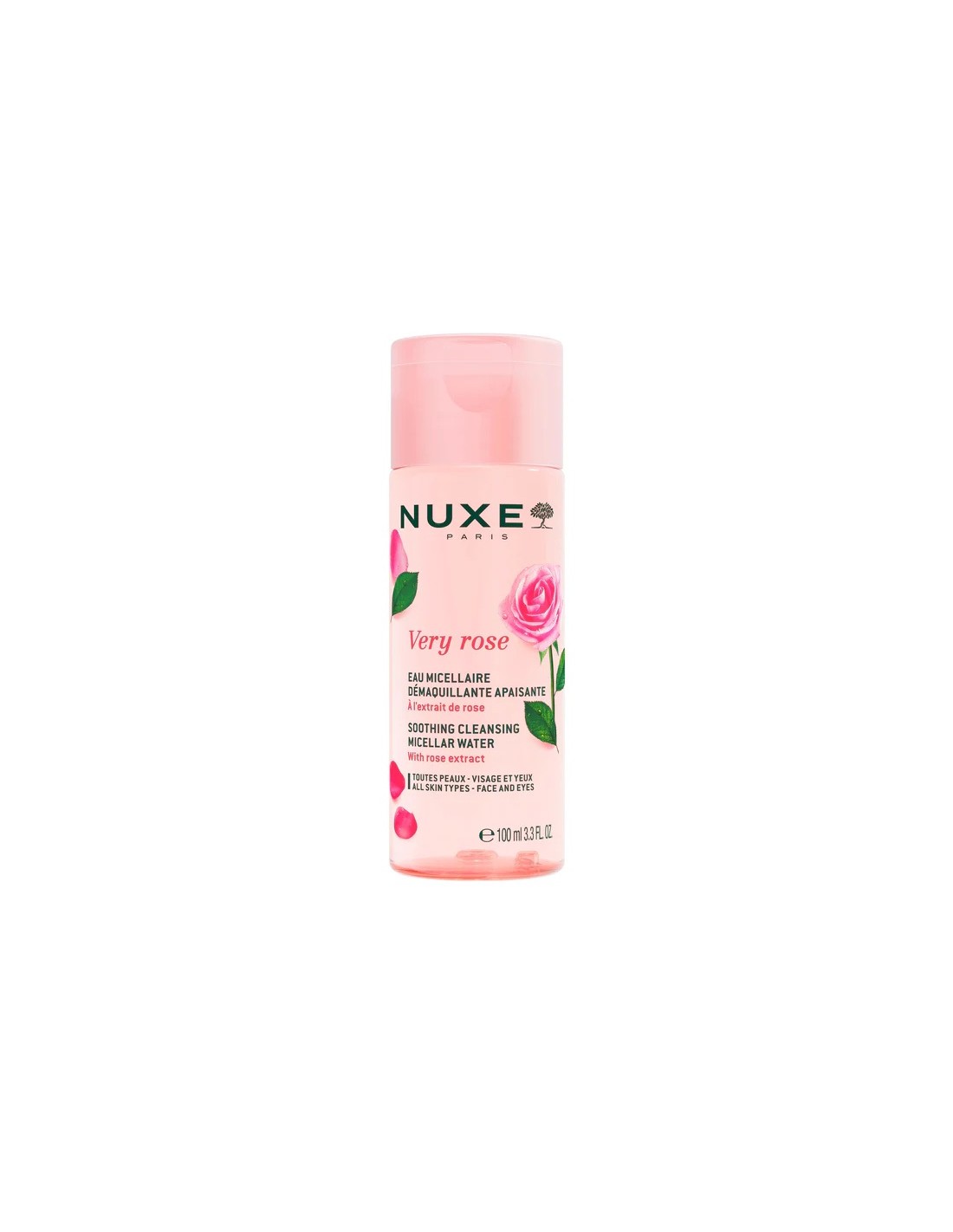 Su fórmula fresca desmaquilla y limpia de manera eficaz el rostro, dejando la piel perfectamente suave, hidratada y calmada al instante. Enriquecida con un extracto de rosa, esta agua micelar contiene un 99 % de ingredientes de origen natural.