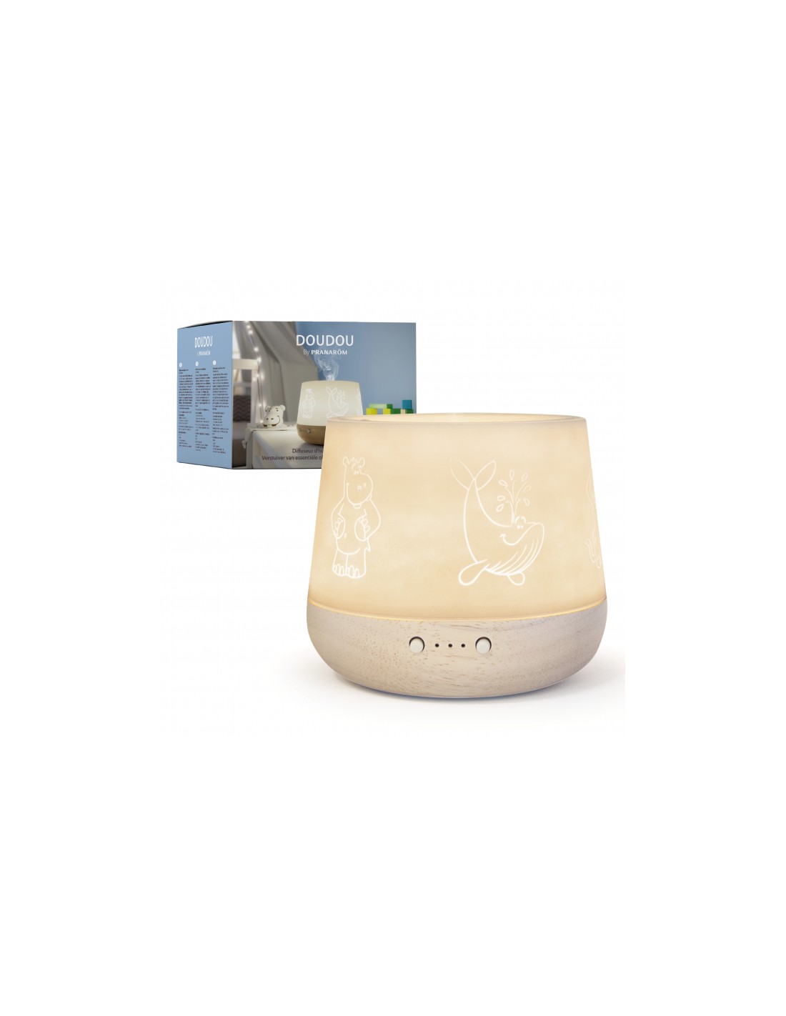 « Hola, me llamo Doudou. Difundo aceites esenciales de olor suave y emito una discreta luz en función de tus gustos. Soy un pequeño difusor y me encantaría tener un rinconcito en los espacios en los que habitan tus niños. Si me adoptas, seré su acompañante nocturno y, junto a todos mis amigos los animales, velaré por su sueño. Podréis darle la bienvenida a los sueños más dulces y a las noches tranquilas para toda la familia. No soy muy exigente: solo unas gotas de aceites esenciales seleccionados para la difusión de los bebés en mi depósito de agua y un poco de energía, y estaré listo para cumplir mi misión. Hasta pronto, en tu casa, Doudou »