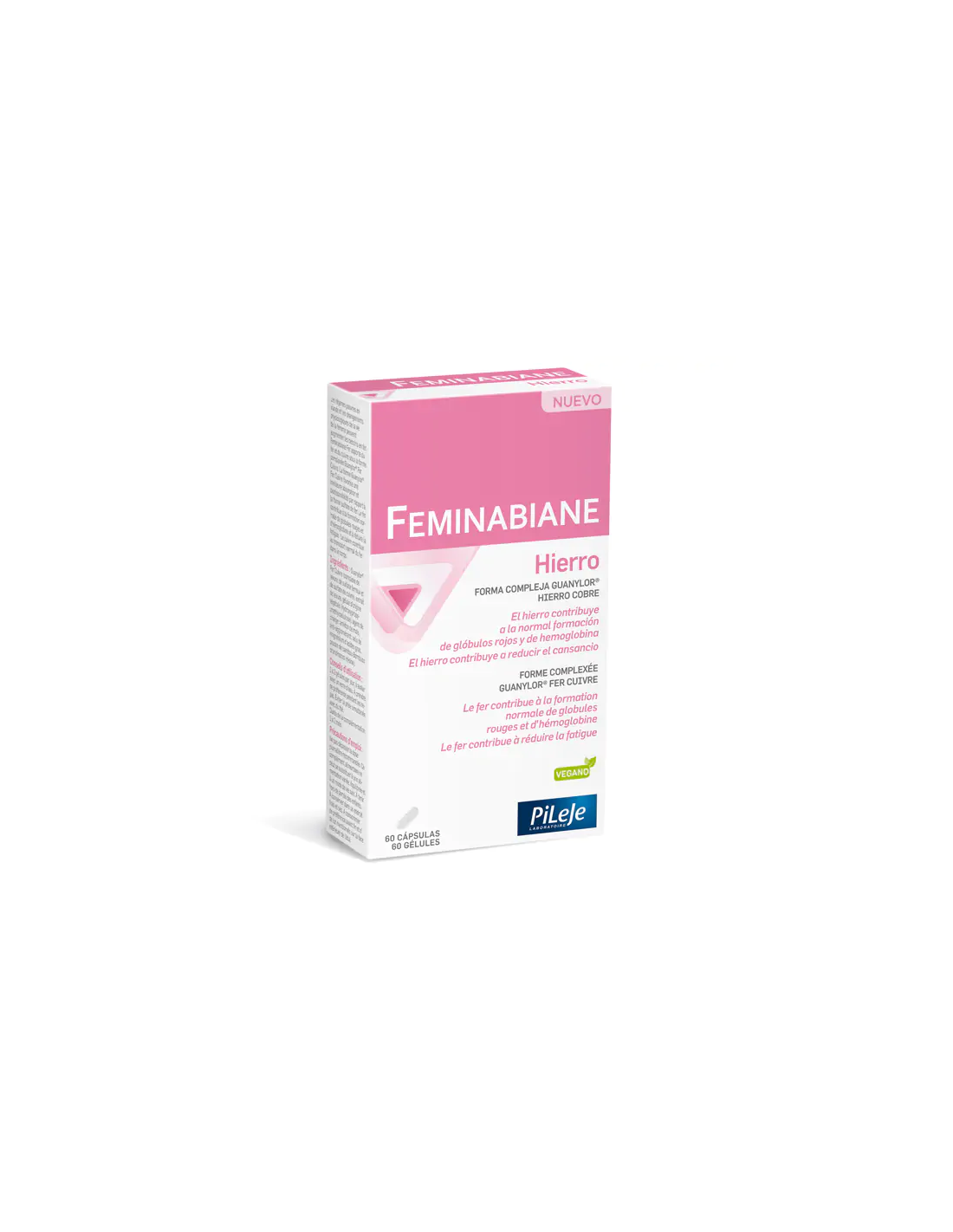 Por otra parte, los cambios fisiológicos de la vida de una mujer, como el embarazo o la regla, pueden aumentar las necesidades de hierro. Feminabiane Hierro aporta: 14 mg de hierro, es decir, el 100 % del VRN*, que contribuye: a reducir el cansancio; a la formación normal de los glóbulos rojos y la hemoglobina.