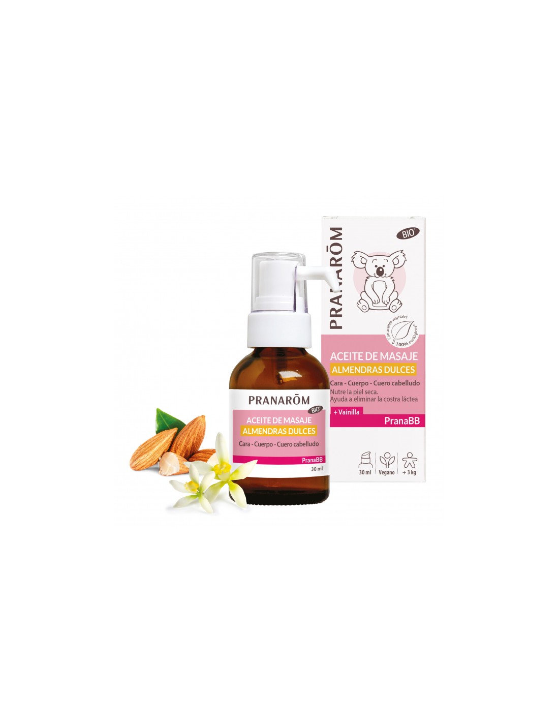 El aceite de almendras dulces, rico en ácidos grasos insaturados, está indicado para la piel sensible del bebé. Es nutritivo y emoliente, por lo que suaviza la piel seca.