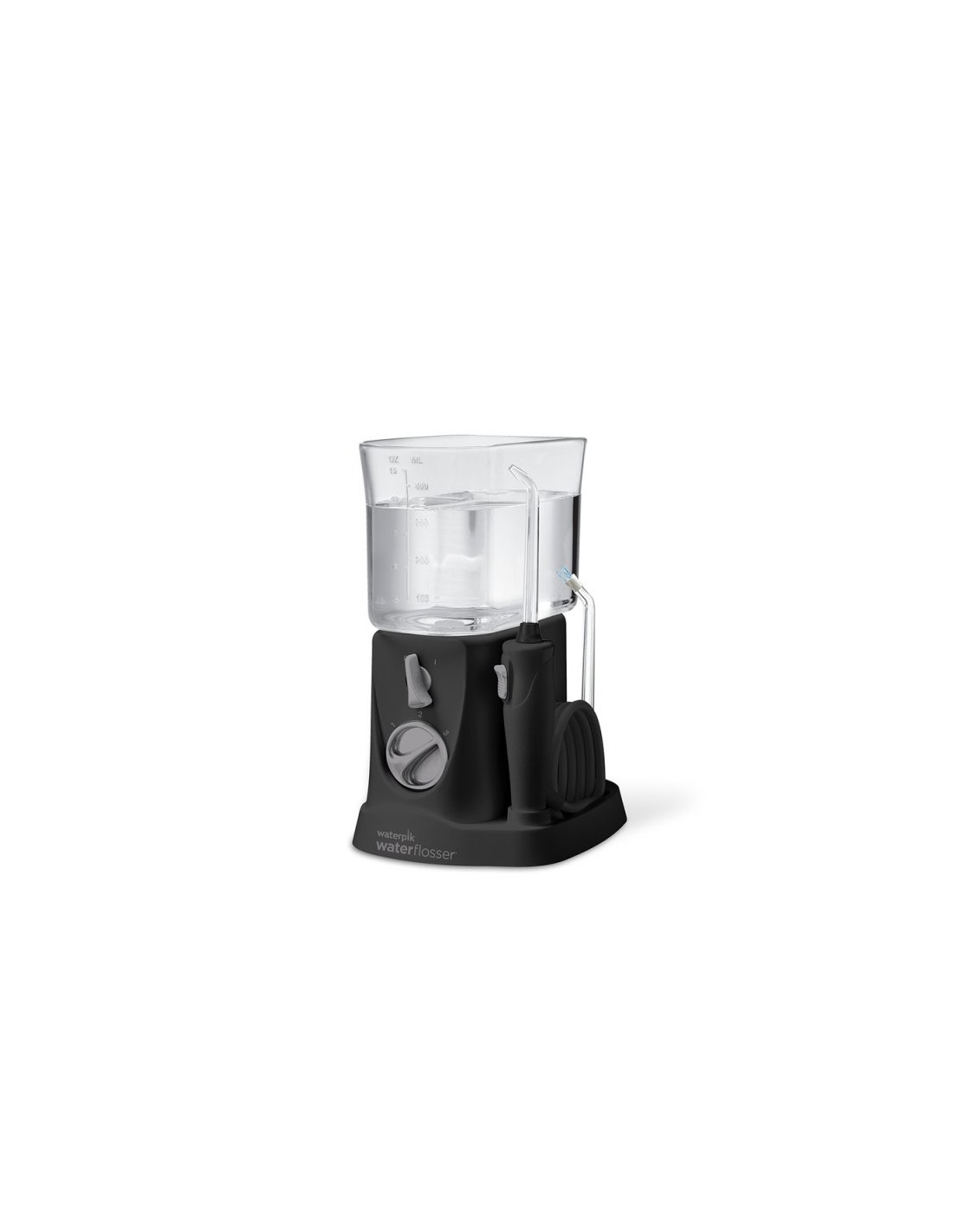 El depósito tiene una capacidad de 400 ml, que permite la irrigación bucal durante 60 segundos, e incorpora un sistema de control de presión con tres posiciones.