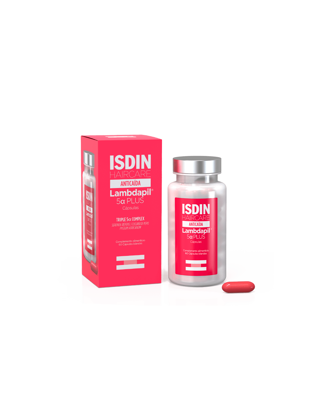 Lambdapil 5α Plus cápsulas es un complemento alimenticio formulado con Serenoa repens, Cucurbita pepo y Pygeum africanum, extractos de plantas específicos para el cabello. Además, su fórmula incluye también vitaminas del grupo B (como Biotina), Zinc, L-Cistina y extracto de Equisetum arvense.