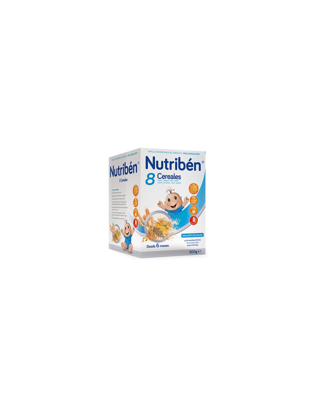 La papilla Nutribén® 8 Cereales, tiene un mayor porcentaje de cereales: los cereales son una importante fuente de energía y por eso son un alimento básico en la dieta infantil.