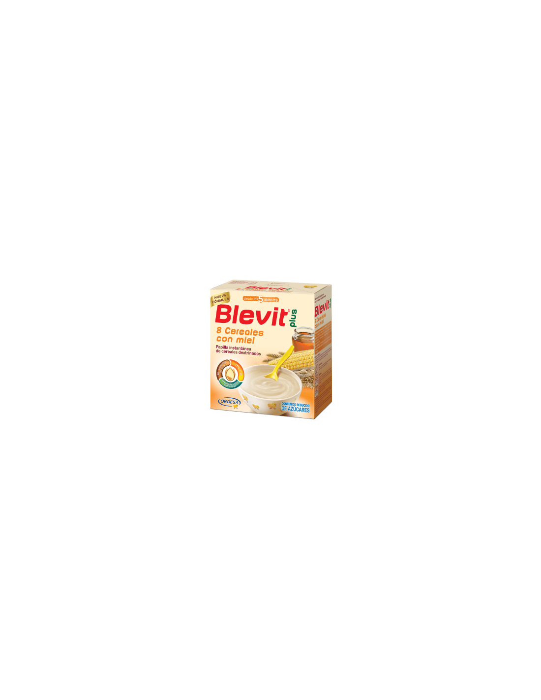 Blevit plus 8 Cereales con miel es una papilla de cereales elaborada a partir de una equilibrada mezcla de 8 cereales y miel, que incorpora cereales integrales en su composición y sólo contiene azúcares naturalmente presentes.