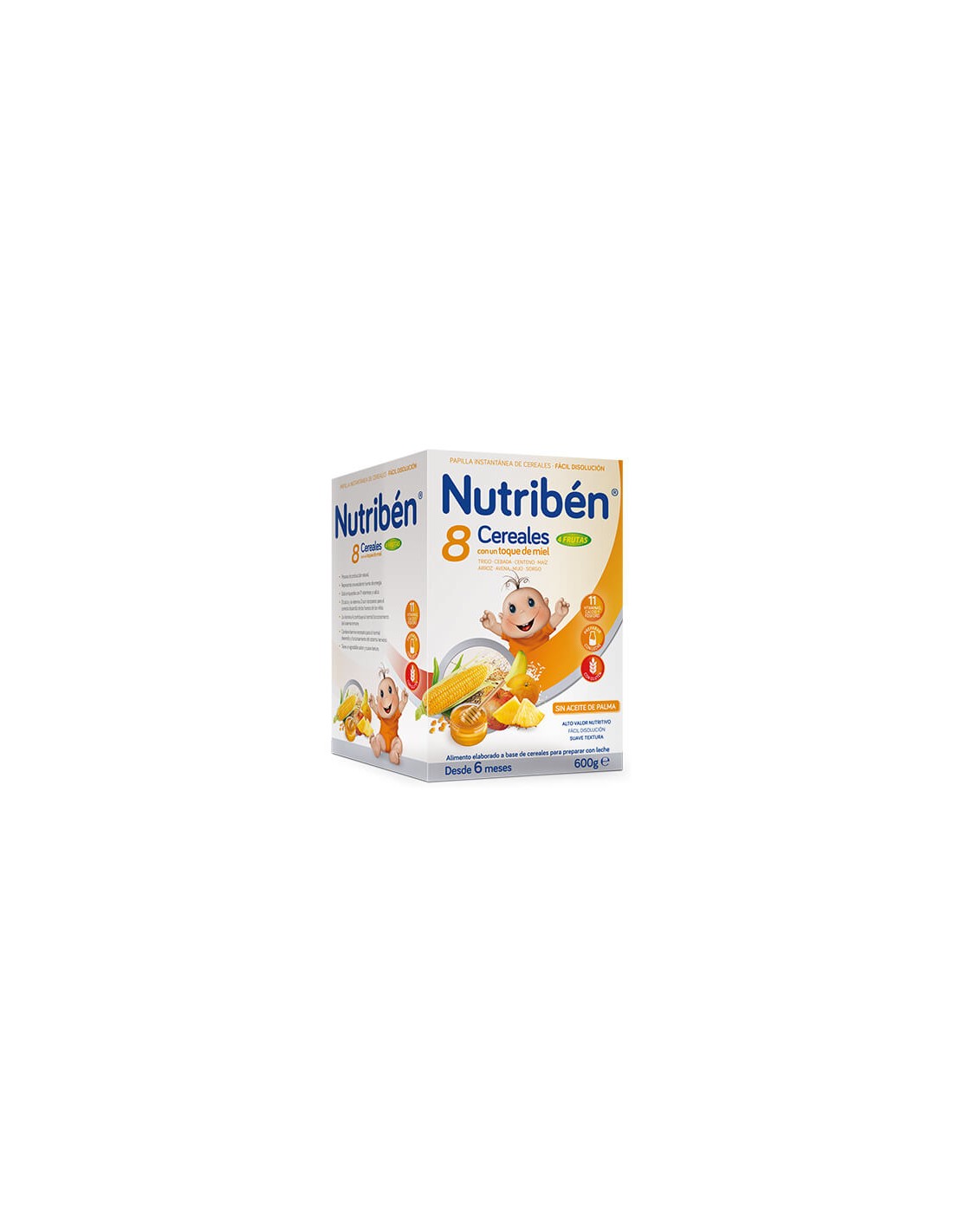 La papilla Nutribén® 8 Cereales con un toque de miel 4 Frutas tiene un mayor porcentaje de cereales: los cereales son una importante fuente de energía y por eso son un alimento básico en la dieta infantil.
