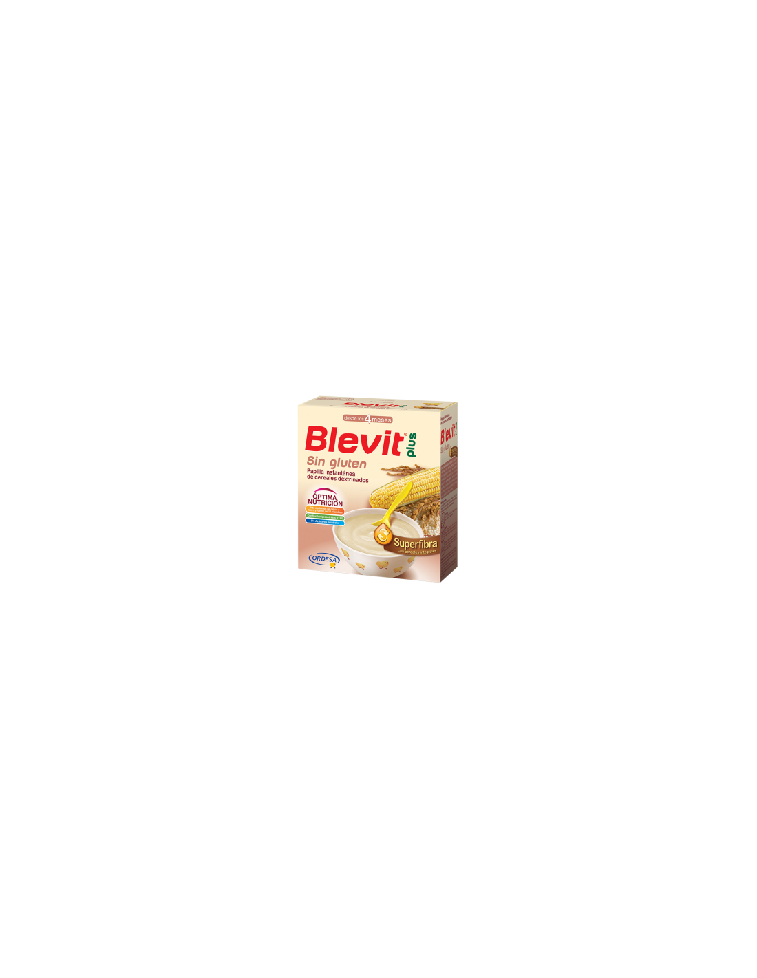 Blevit plus Superfibra Sin gluten no contiene azúcares añadidos, manteniendo el aroma y sabor natural de sus cereales, por lo que es una alternativa completa y equilibrada para que el bebé adquiera unos buenos hábitos de alimentación. Blevit plus Superfibra Sin gluten aporta un Efecto Superfibra, por su contenido en cereales integrales (fibra insoluble) e inulina y FOS (fibra soluble), que combinados ayudan a regular el tránsito intestinal.
