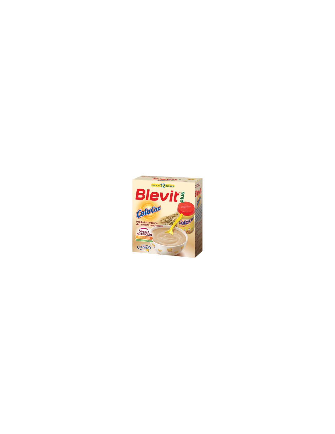 Blevit plus ColaCao®, es una papilla elaborada a partir de la mezcla equilibrada de 5 cereales (trigo, arroz, avena, cebada y centeno) y Cola Cao®, que ayuda a incrementar el valor nutricional y energético de la papilla proporcionando un agradable sabor.