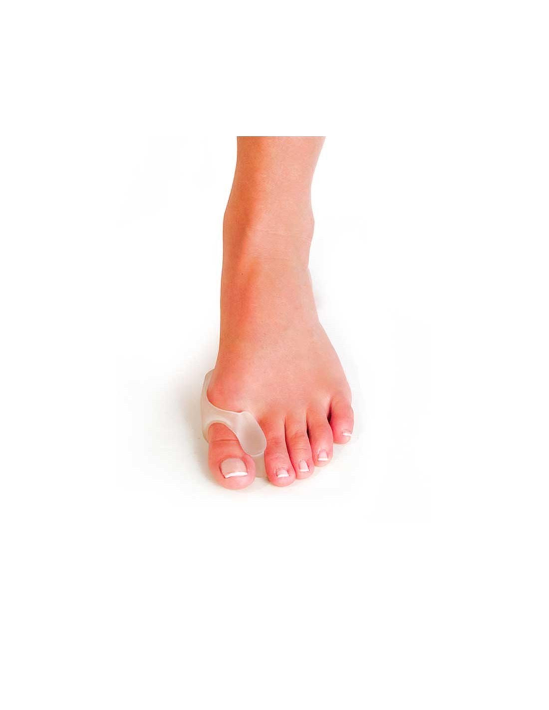 Alivia el dolor de los juanetes y ayuda a preservar la alineación de la articulación. Reduce la presión en la protuberancia ósea. Su diseño patentado protege el juanete de la fricción causada por el zapato.