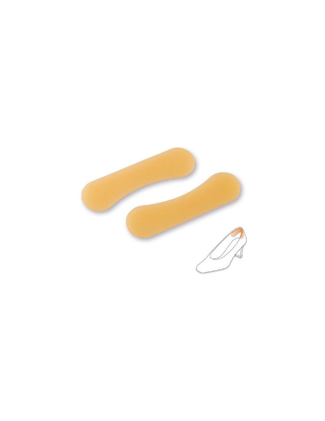 Se pegan en la parte interna del zapato para evitar el roce del talón y el deslizamiento del mismo. Diseñados para aliviar y proteger el talón de contrafuertes que molestan, evitando rojeces, ampollas y roturas en las medias.
