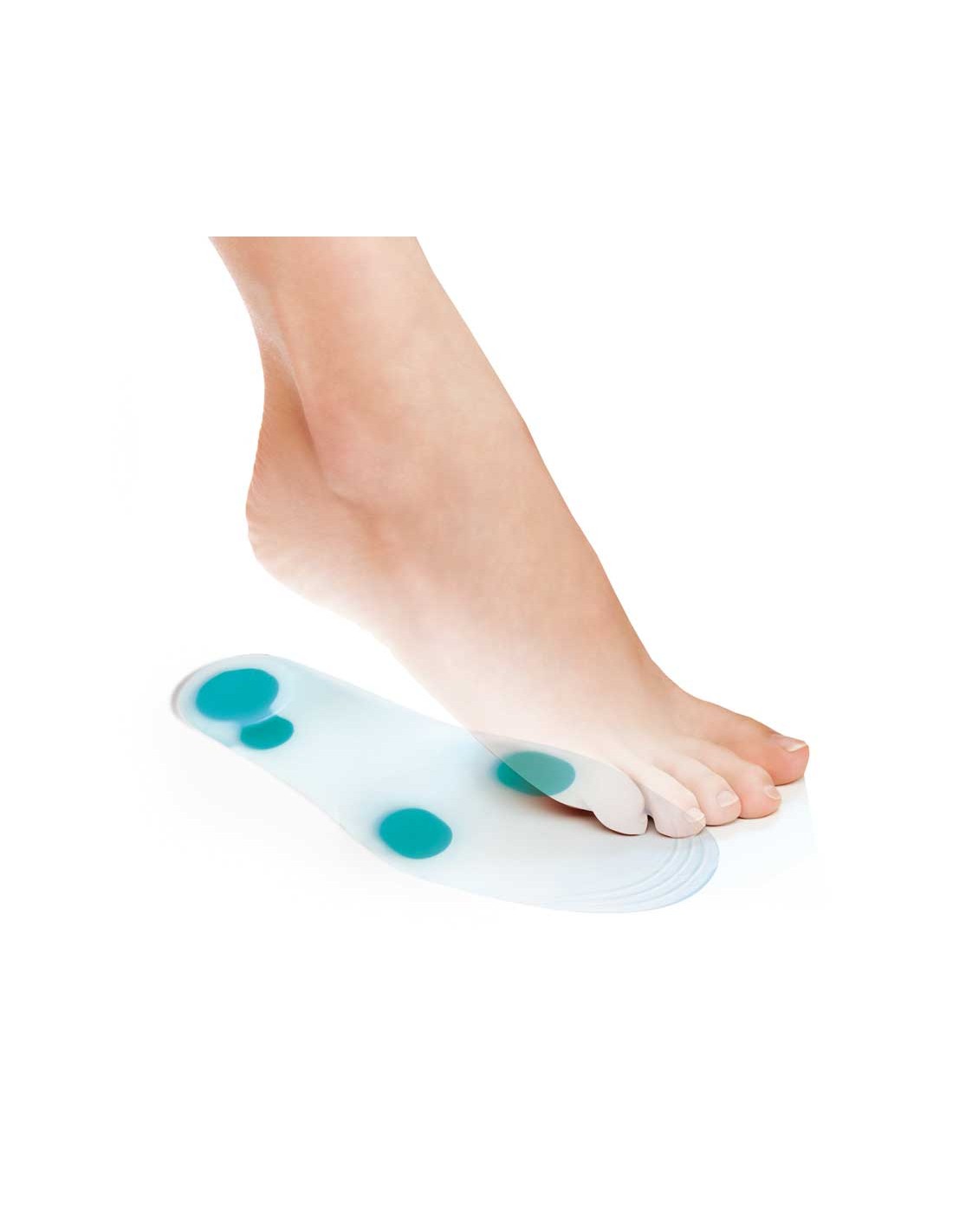 Proporcionan alivio y confort al evitar la presión en la zona del talón y los metatarsos. Especialmente indicadas para pies cansados, débiles y delicados. Después de usar, lavar y entalcar.