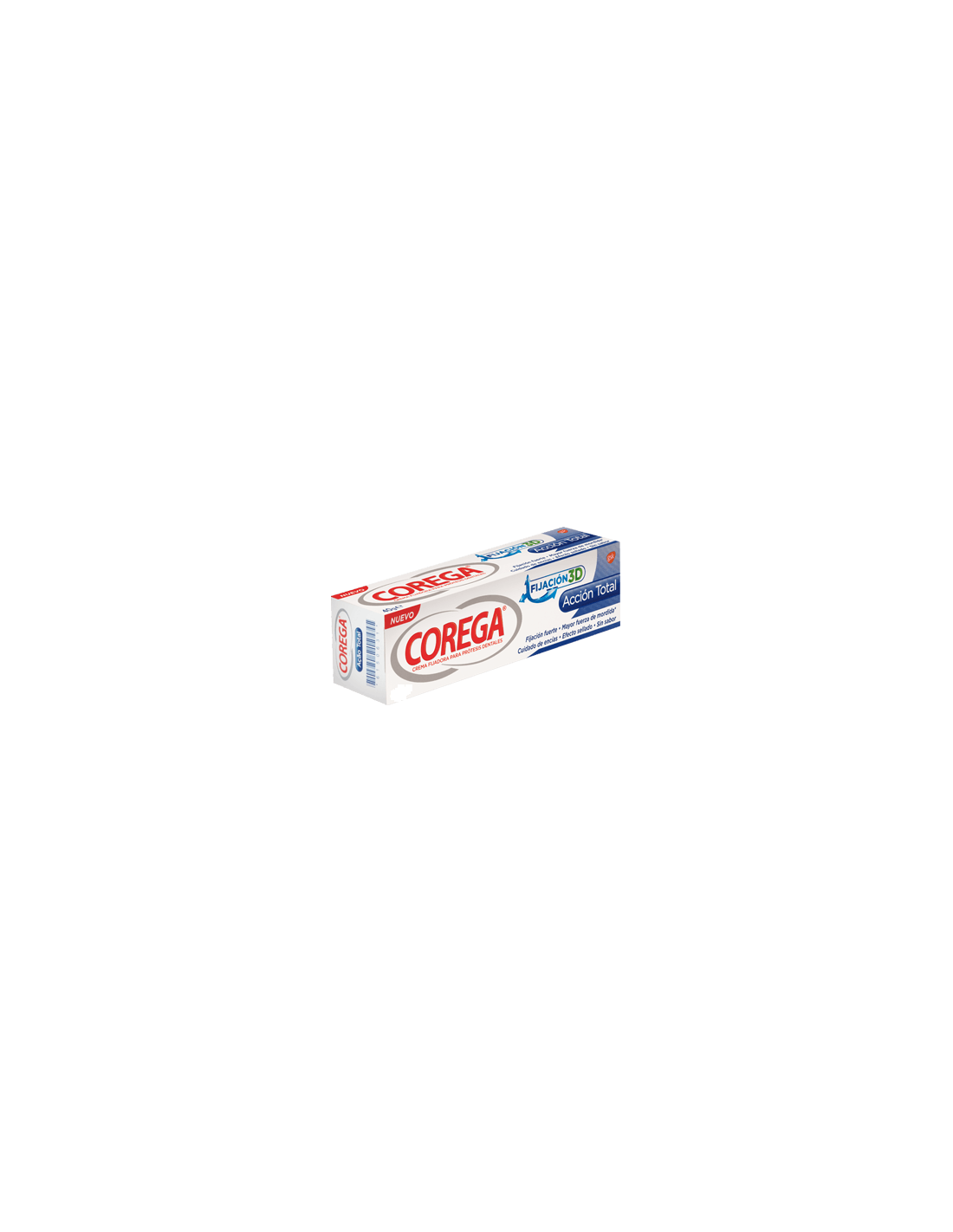 Además, COREGA Acción Total fija su prótesis durante todo el día, ayudando a evitar que la comida se quede atrapada entre la prótesis y la encía y a proteger las encías de las irritaciones.