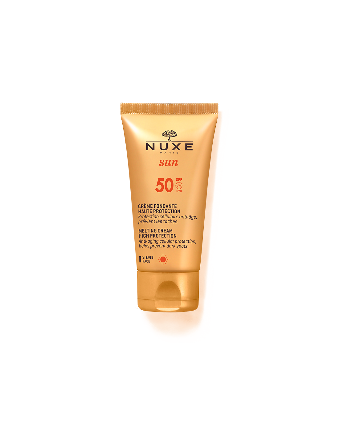 Antes de la exposición, aplique generosamente la Crema Fundente Rostro SPF 50 NUXE Sun.