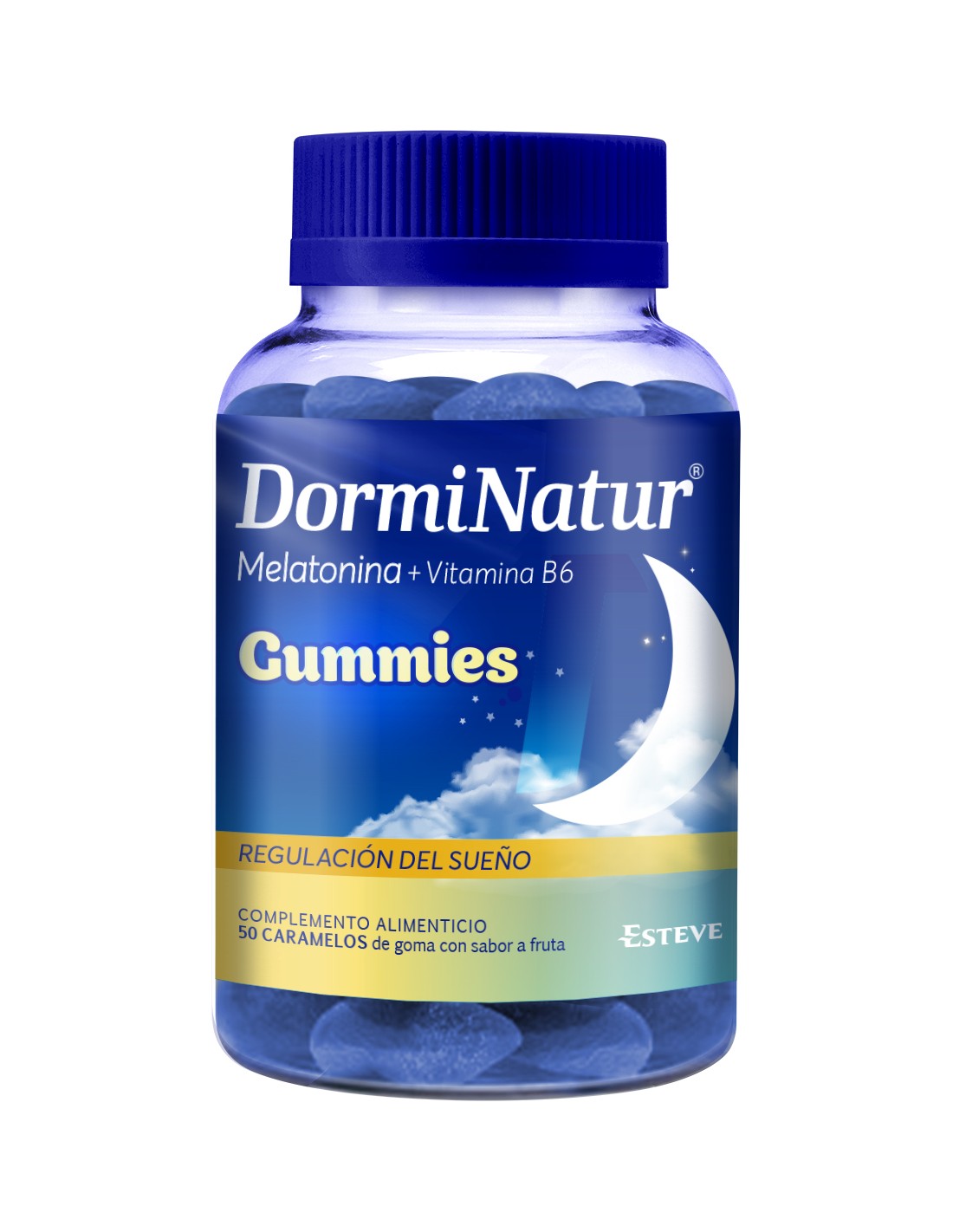 Dorminatur Melatonina + Vitamina B6 50 Gummies es un complemento alimenticio natural a base de melatonina y vitamina B6 que contribuye al descanso nocturno.