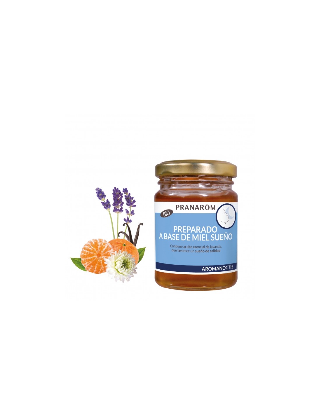 El preparado a base de miel sueño AROMANOCTIS favorece el sueño y el descanso si se toma durante el ritual de antes de dormir. De sabor dulce y agradable permite tomarlo puro o diluido en una bebida caliente.