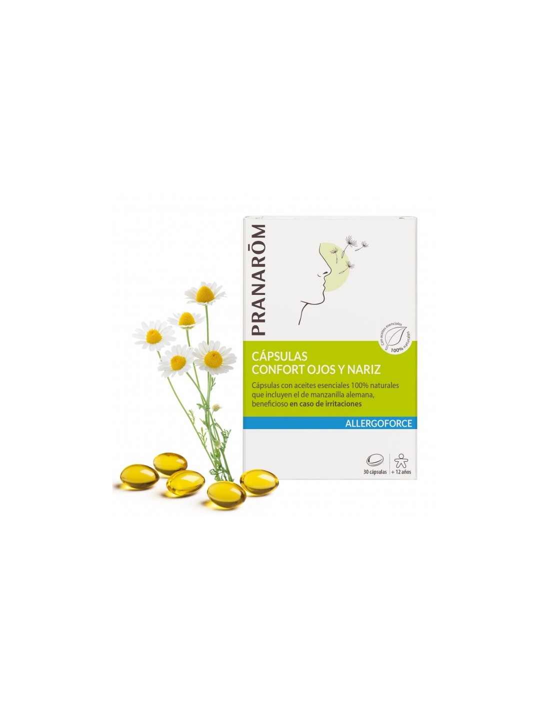 Cápsulas con aceites esenciales 100% naturales que incluyen el de manzanilla alemana, beneficioso en caso de irritaciones