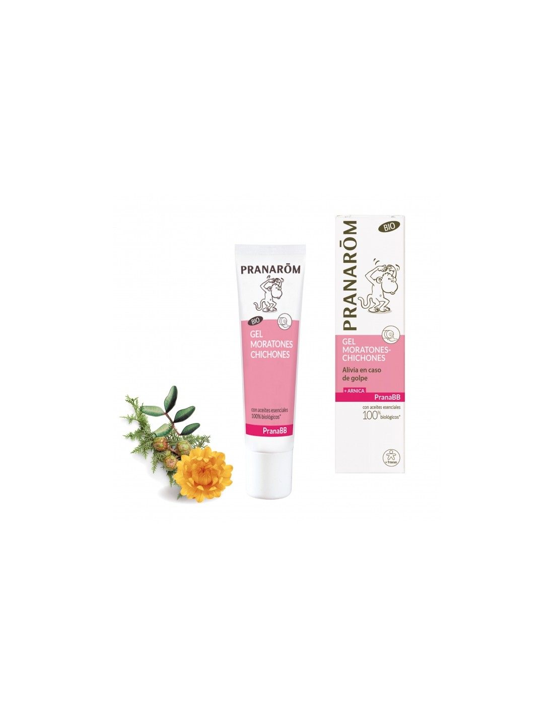 El gel Moratones-chichones es un gel calmante con certificado BIO, con aceites esenciales de siempreviva amarilla, ciprés, katrafay y lentisco, enriquecido con aceites vegetales de árnica y calófilo. Una sinergia conocida por ser reparadora y antiequimosis.