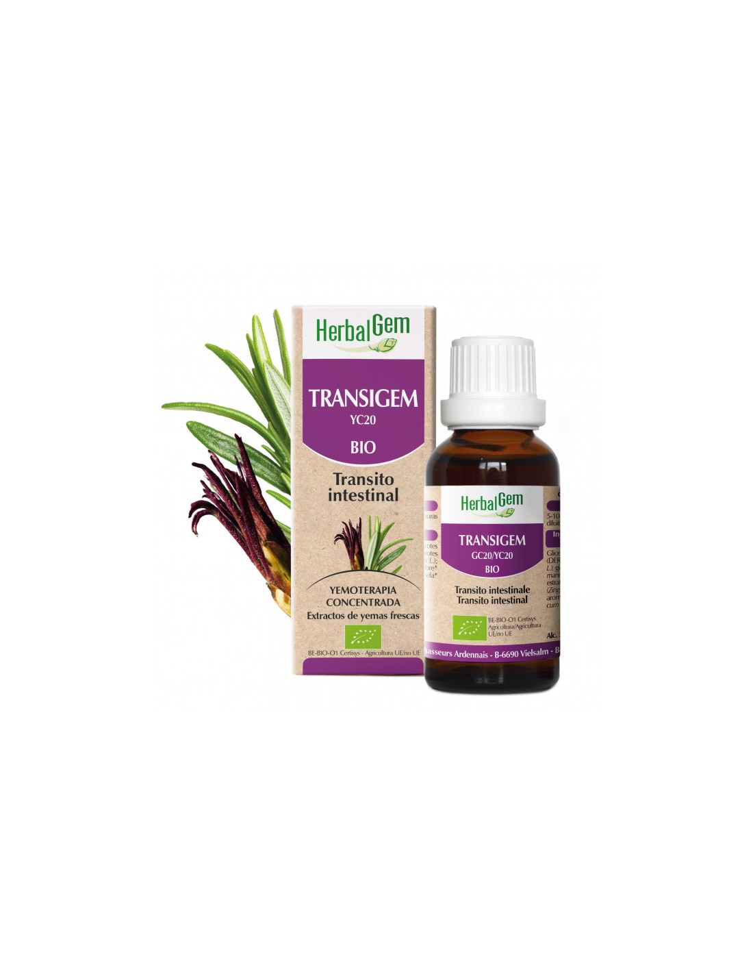"Transigem reequilibra el tránsito intestinal gracias a la sinergia de las hojas tiernas de saúco y romero, las raíces frescas de jengibre y al aroma de canela. El saúco es una planta purificadora que actúa haciendo una auténtica limpieza del ecosistema intestinal. Estimula suavemente el tránsito intestinal. El romero favorece la eliminación de toxinas gracias a su acción a nivel del hígado. El extracto de jengibre fresco favorece el movimiento suave de los músculos del intestino y protege la mucosa gracias a su acción antioxidante."
