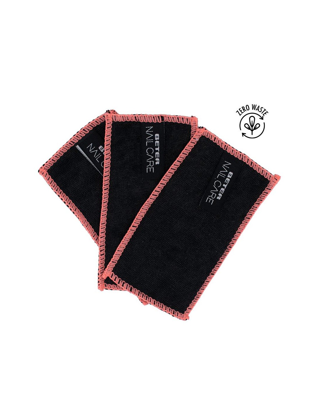 Elaboradas en un tejido especial que permite retirar el esmalte con facilidad, pueden usarse con el quitaesmalte en crema Beter Nail Care o con un quitaesmalte convencional. La opción zero waste para eliminar los productos de un solo uso como los discos de algodón. Pack de 3 unidades.