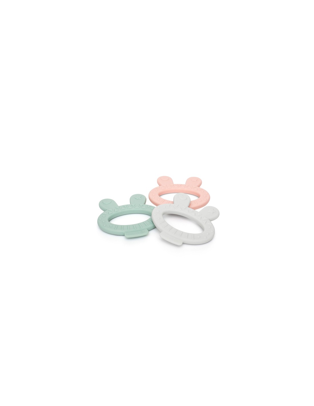 Fabricado enteramente de silicona, sus burbujitas de goma masajean las encías y contribuyen a la erupción de los nuevos dientes.