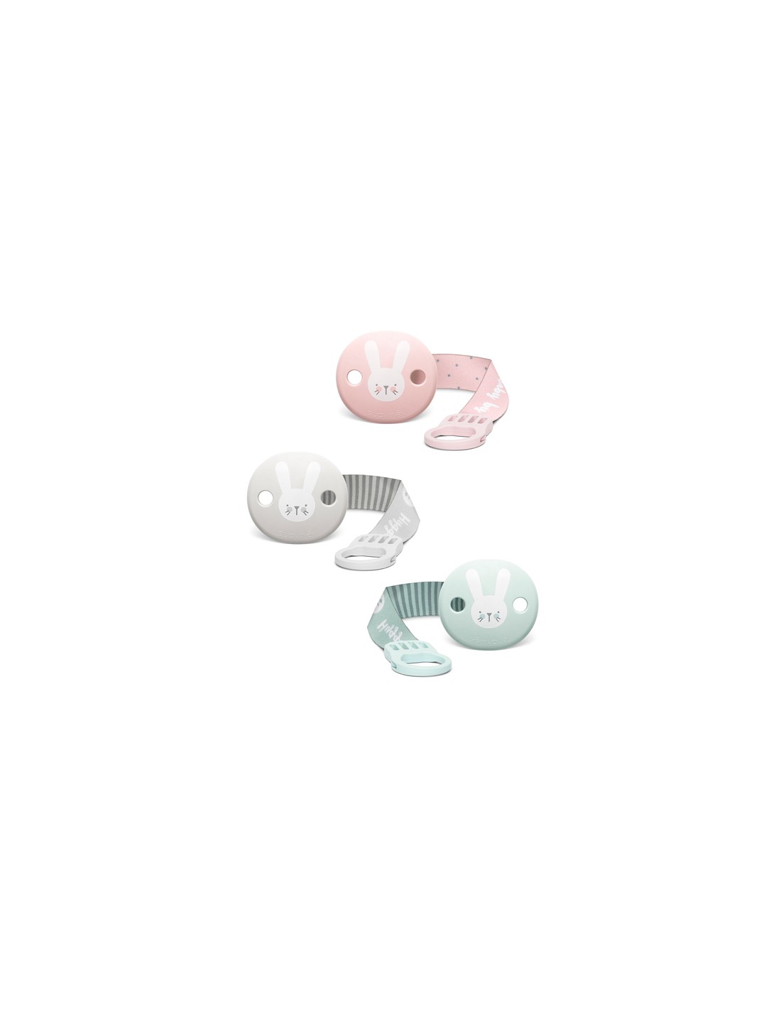 El broche pinza con cinta, textil con diseño a doble cara, sujeta el chupete a la ropita evitando que caiga al suelo y se ensucie o pierda.