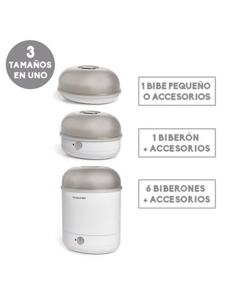 Esterilizador eléctrico idóneo para la limpieza de chupetes, biberones y accesorios del bebé.